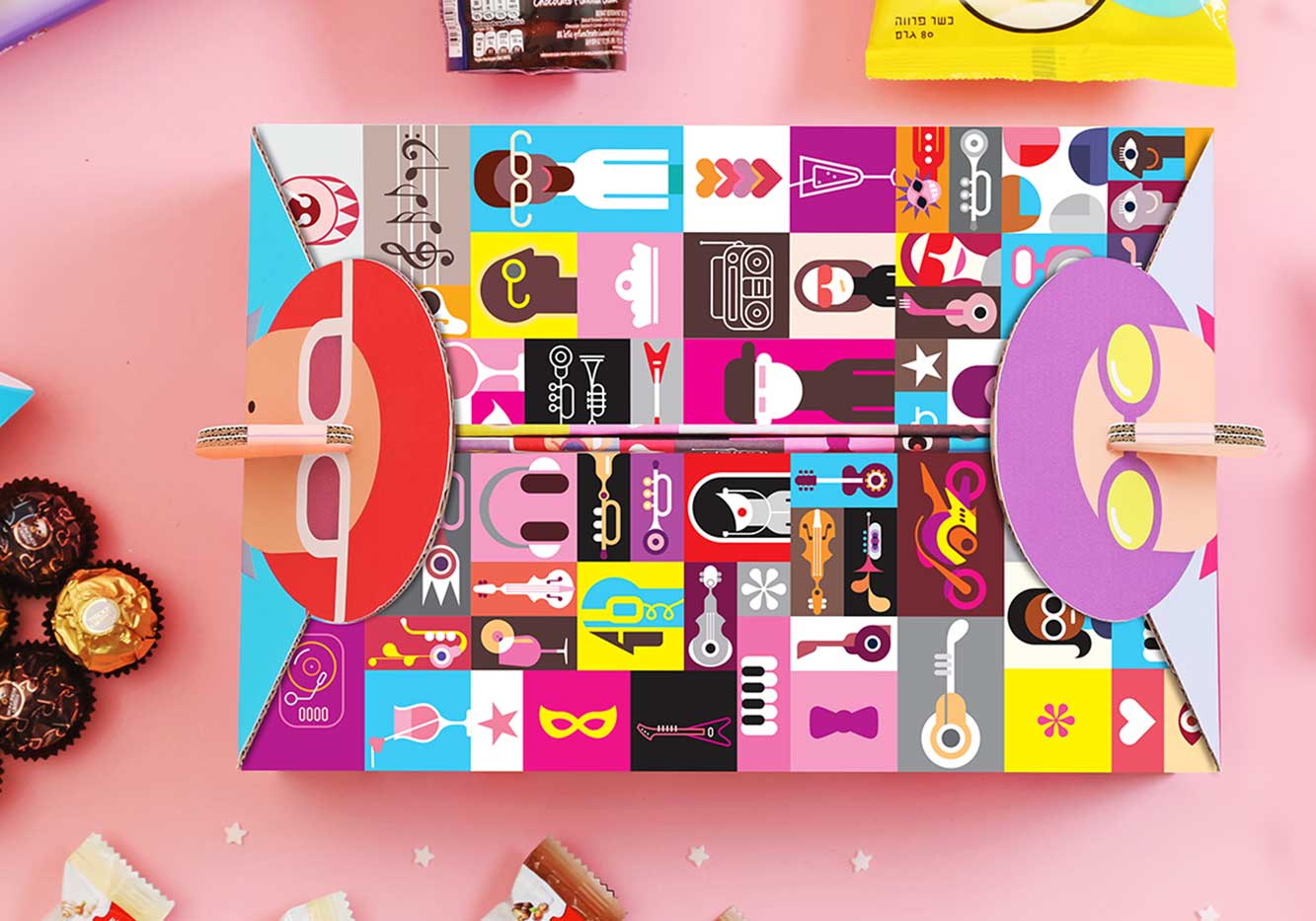 מור ולבונה עיצוב ומיתוג חזק לאריזה לחבילת שי עבור חג פורים. דגש על שונות מול המתחרים באמצעות קונספט איורים דגש על צבעוניות והומור. חשיבה על סוגר האריזה עם דמות מחופשת אשר שומרת על קו אחיד. חזרה לעמוד ראשי
